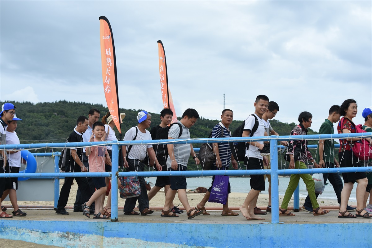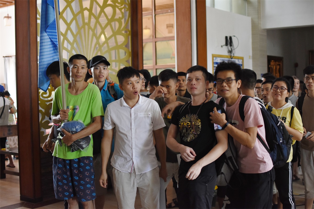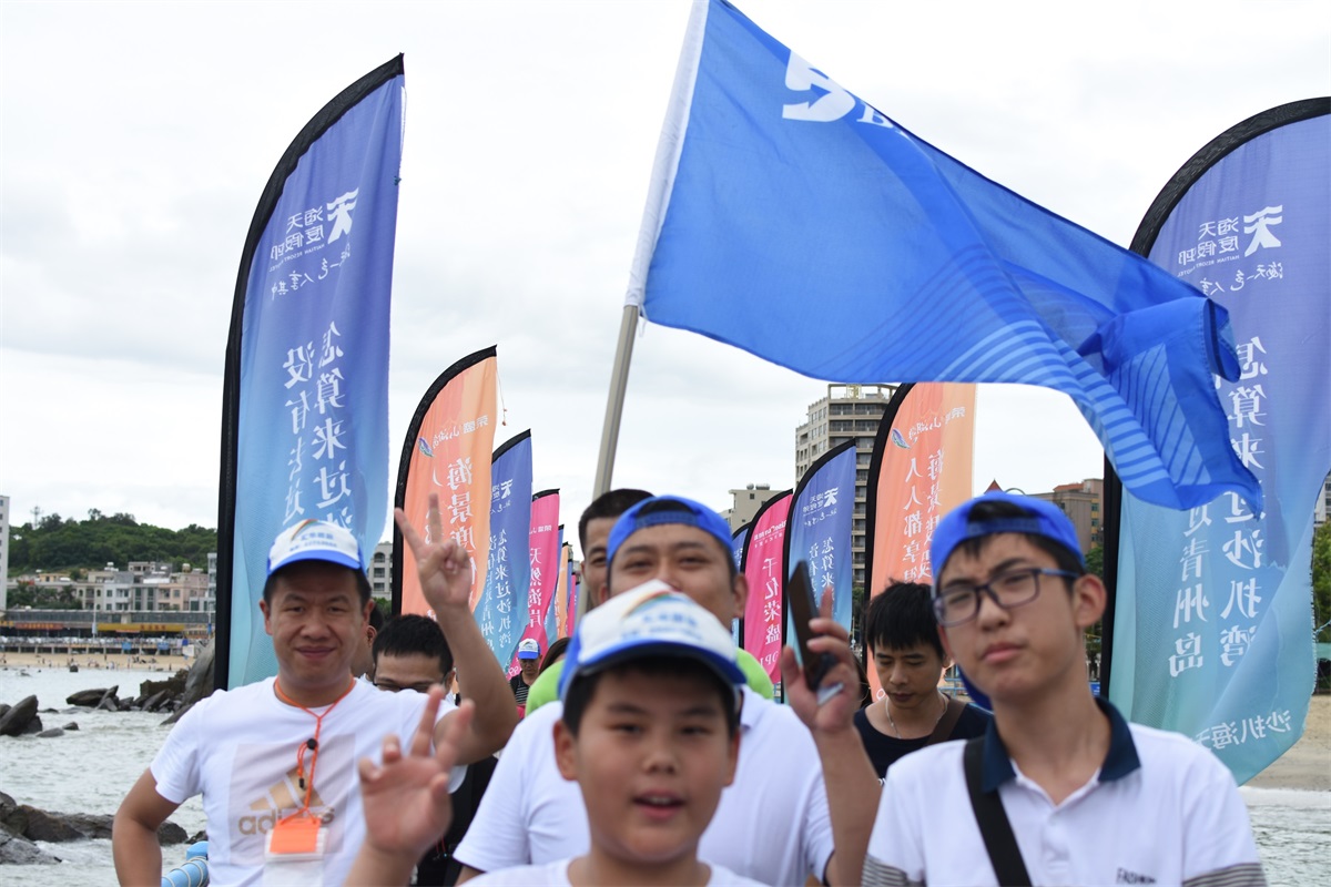 8月19號一大早,微風拂面,大家都喜笑顏開,懷著無比激動興奮的心情踏上前往沙扒灣青州島的旅途。手中天藍色的旗幟,仿佛已感受到大伙兒的陽光與自信,也在空中翩翩起舞。